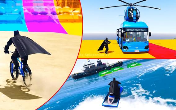 superheroine Jetski racing is very conceptual and popular trend in these days drive the jet ski in the city ocean and perform the jetski stunts like real boat racing in the sea perform Waterland racing stunts and land in the ship which is placed in the center of an ocean you can switch the vehicles on the fixed positions because you have to ride and drive all the vehicles and this is your challenge to stunts on the downhill pick the checkpoints and in gt racing drive mode like a rabbit superhero. Let's play games with full of enjoyment challenge the superheroes like Batman vs Hulk and the superman vs thor give them challenge task and compare the result which one is better you can use the powers of all the superheroes. Enjoy the bus driving stunt, realistic boat racing, the freestyle BMX stunts. Available on google play download now.