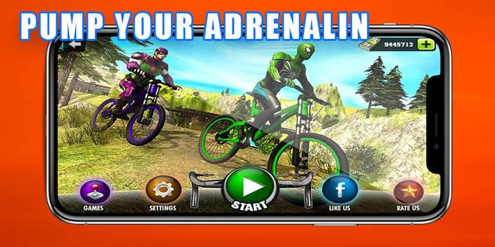 Start your super hero downhill bicycle racing and show your real time off road crazy stunts, obstacle and hill climbing experience by driving cycle on mountain tracks.