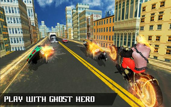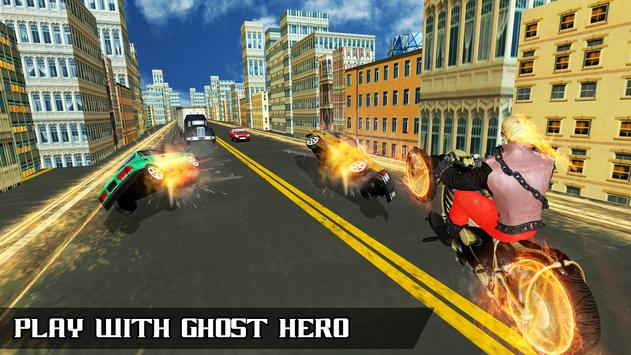 This game is the ultimate game among the top ghost games. The ghost fire hero having the burning skull fire has ghost hunters too behind him, chasing him down, hunting him like an animal. All the ghosts including Super ghost whose role you will play, evil ghosts, monster ghosts and enemy ghosts do ghost riding and bike racing. And the super ghost hunters chase you all. Powerful ghost hunters try to hunt you down, you have to escape them for your necessary survival by using the ghost speed of your super fire bike.