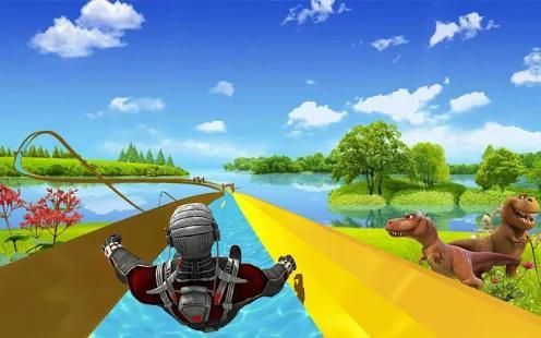 Its time to enjoy on tobogan like longest water slides in our water slide simulation 3D game. Played many of water slide games and you are looking for extreme superhero waterslides game this is what you will like out of all rush games. This water slide game with multiple superheros and super villain Harley Quinn are going to be addictive gameplay among the swimming pool games and harley quinn games in crystal world.