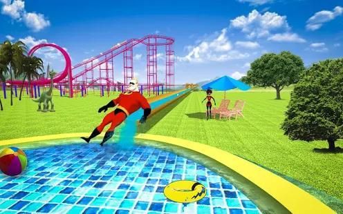 Are you ready for a big water splash this summer! Forget all the roller coaster rides and funland fantasy adventure games and join the incredibles water slide amusement rush in the superhero incredibles water slid simulation game in crystal world.