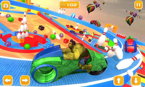Your beloved superhero breaks all the levels of excitement with non-stop everdrive, stunts and tricks. They beat with each other and cross the limits of ride on a future Moto bike. They demolish all the hurdles which come in their way and they reach at the destination. They used different tricks to maintain the balance on tracks and beat the level of fear. Finally, you know there is no superhero hospital and superhero doctor exist in this world that's why you ride carefully.