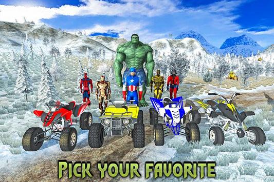 - Choose your favorite super hero champion atv racer including spider motocross bike rider, panther superhero atv biker, ant hero, Captain USA adventure racer & many more heroes.