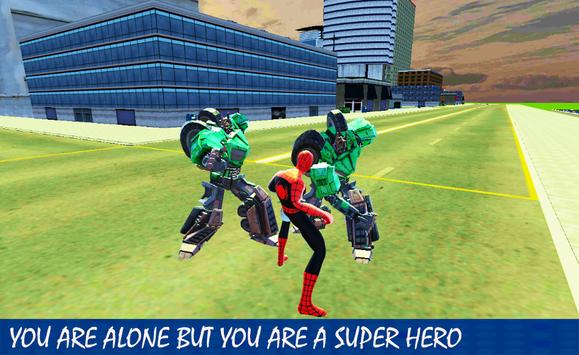 Your city had been attacked by criminal and evil robots . Get ready for the war against criminals and evil robot fighter and become a hero and savior of a city. You can play as a Spider Hero with super power skills where Spider as a character of super Hero fights and catch the evil and Transform Robots. Your giant, powerful Spider Hero jump into the city and chase the GANGSTERS Robots to kill them who come into your city and causing disasters. So safe your city from evil and gangster mafia Robots.