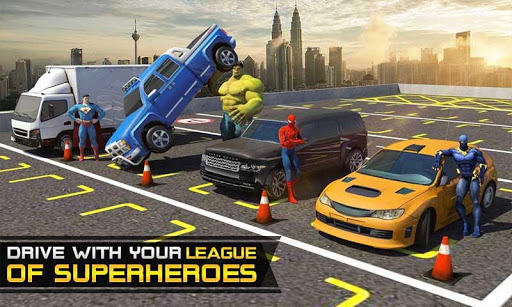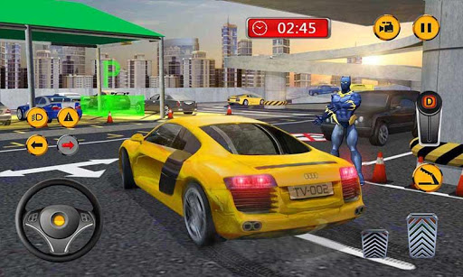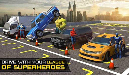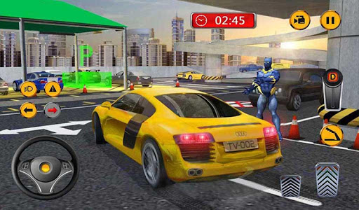 Start superheroes valet car parking escape and fun car driving adventure amidst suburban town. Learn how to navigate vintage cars along with league of super heroes in free parking environment and exhibit precision driving. Drive muscle car with highest precision around corners, obstacles, and parking lot borders with speed and accuracy. Parking luxury car at the fixed spots in multistorey plaza requires real driver skills. Avoid crashing vintage car with barriers and other parked vehicles for a perfect carpark. Drive out of the shopping mall parking plaza; move through the real city traffic and park backwards at superheroes valet car stand like pro driver. Ultra realistic super-fast luxury car driving physics with breathtaking graphics. Hard superhero car parking challenges requires real driver skills. Simply one of the best superheroes cop car parking games of 2018.