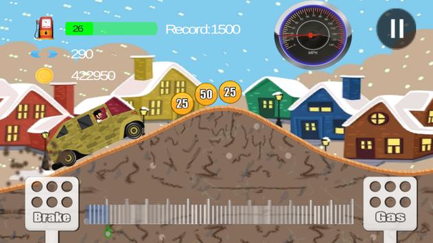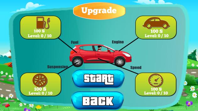 Face the challenges of hill climbing using unique cars. Collect coins on your way to upgrade your car and reach higher distances. Experience the adventure of driving and running out of fuel as you accelerate. You can refill your fuel anytime on the way.