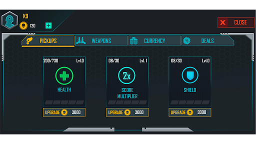 Shoot highlighted objects to acquire pickups which can be upgraded as well