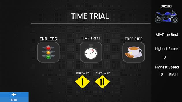 You can play 3 different levels Endless Free ride and time trial. In each category there is a sub category you can choose one way traffic and 2 way traffic.