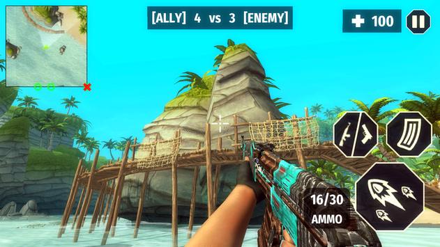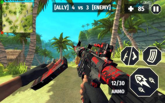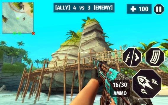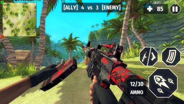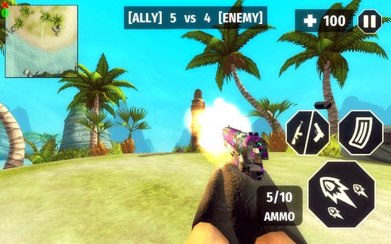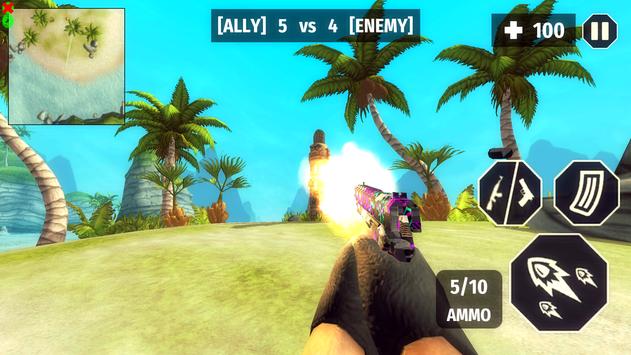 In Surviving Arena Free Fire Survival Battlegrounds 3D, you are in FPS mode. You are on a beautiful island with your friends. At the start of level, pay close attention to your team's strategy. If your allies are going to rush towards the enemy, you should also rush and attack the enemies together. On the other hand, if your allies are wanting to camp and wait, you should also hide and wait for the enemies to step into your area before you catch them by surprise.