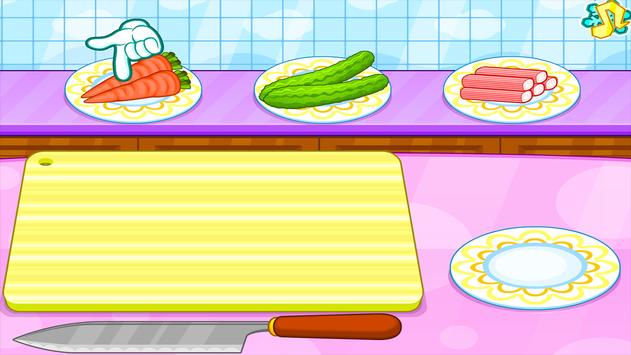 One of the best cooking games!cooking games for girls Sushi is at your service if you want a break from the routine meals and want something different. Prepare yourself a yummy serving of sushi with the tasty rice, fish and vegetables and flavors of your choice. The chef inside you will love Sushi cooking games and you will learn how to make sushi cooking games on the go!