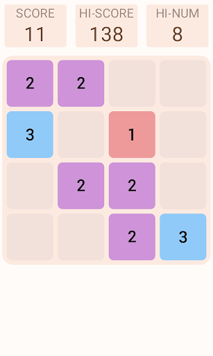 Swap two tiles with each other. If you form line of three tiles with same numbers, swapped tile will increase its number and other tiles will disappear. New tiles will appear in random places. Your goal is to increase numbers and get 10. But you also must keep empty place on board. Because when there won't be place for 3 new tiles, your game will be over.