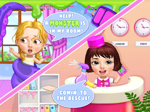 There are so many messy rooms at the hotel! Bedroom, cafe, bathroom, gym and swimming pool! They always need a good clean! Get rid of slime monsters and toilet creatures! Wash, fix and vacuum! Use tons of cleaning tools and make the hotel shine again! Clean up the mess, earn coins and unlock more rooms! Keep them all nice and clean!