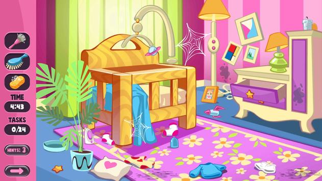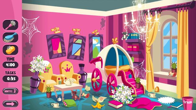 Princess girl cleaning game and girl dress up clothes always have to keep regular. Princess girl's house consists of 6 rooms. Bathroom and living room, children's room, wc, bedroom, all have different rooms. Just clear all the rooms before your home guests arrive.