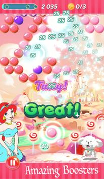 Match at least three candy bubbles of the same colour to burst them and remove them from the field. Try to drop big bubble clusters to earn delicious bonus points and complete the level's goal to move forward. Can you earn all three stars? You will enjoy the journey of bubble shooter.