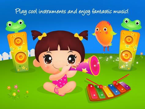 Emma likes to play and listen to music very much! Join Emma in her music space and learn to play different music instruments. Experiment and play nice music or have lots of fun making scratchy noises. Play xylophone with real sounds, tambourine, bongo and the musical frogs. You will love it!