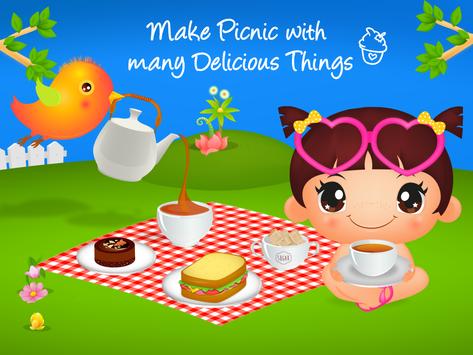 After all the work in the garden, Emma can relax. What can be better than having a fantastic picnic and tea party with plenty of delicacies of nature? Help sweet little Emma prepare the picnic blanket with tea and all the yummy stuff. Play and learn to share - Emma always shares a cup of tea, a piece of sandwich and a slice of cake with her friend sweet little bird!