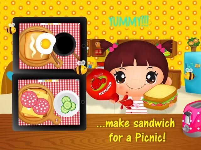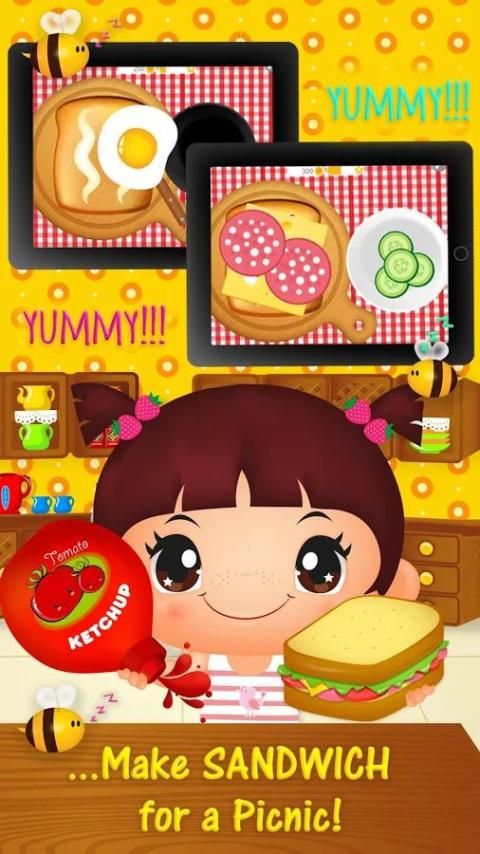 Help Emma prepare her lunch! Prepare the most delicious, egg, cheese, ketchup, salad and club sandwiches ever. Surprise Emma with a cupcake and pop the cheeky cute bees!