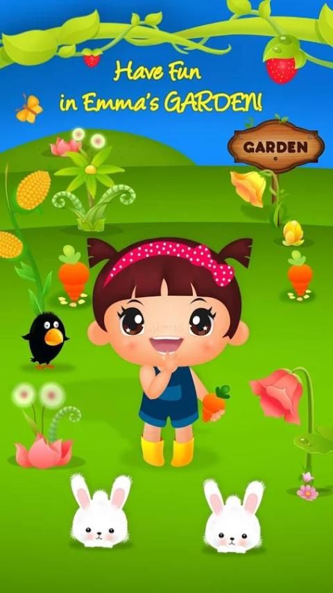 There is always plenty to do in her garden, full of the most delicious fruits and vegetables. Grow carrots by watering them and harvesting them! Sort apples and oranges into correct baskets, feed the small cheeky raven and bird, and have tons of fun with Emma in her little farm!