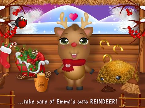Go to stable and help Emma clean up, feed, take care and dress up her funny pet reindeer.