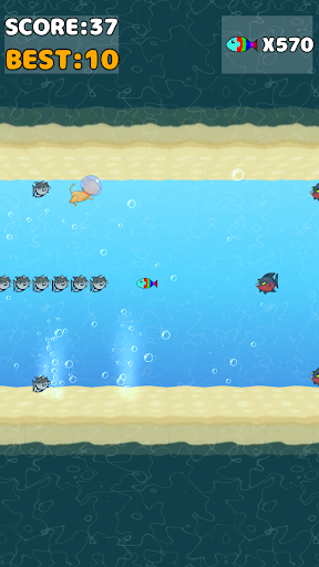 Swimming cat is a game, in which a player tabs on the screen to evade obstacles in order to swim the furthest distance.