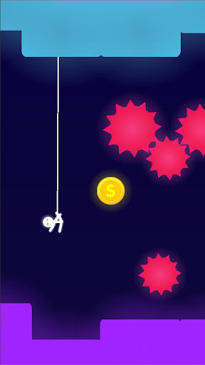 - Swing from hook to hook to pass all the levels and earn as many coins as you can