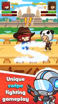 Did you ever dream about wielding a broad sword, a big club, shoot and fire an Uzi or slicing up your opponent to bits with sharp and fearsome throwing stars? Get in the zone and collect all weapons to create your own style and activate sweet animation moves. Be ready for it, and put on your defensive gear of helmets, hats, bandannas, rings and accessories to protect yourself from what’s to come in this exciting adventure! There is no mercy when a duel begins in Swipe Fighter Heroes – only the strongest, most lucky and smartest players will survive. Man or woman, young or old, bat, cat or mouse – spare no one - smash them to goo!