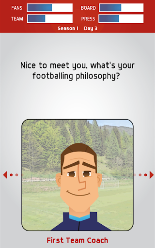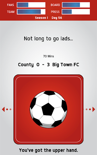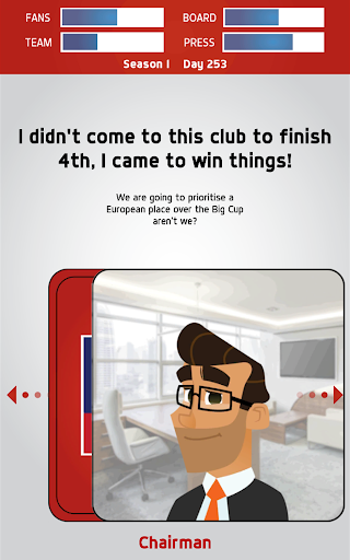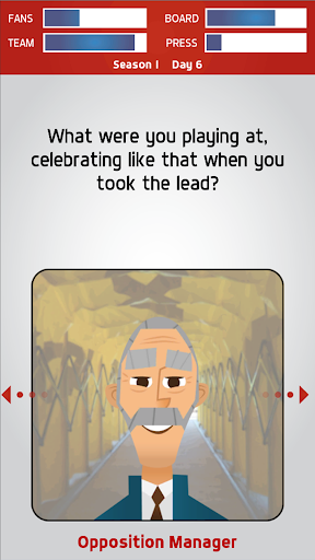 Whether it's dealing with terrible VAR decisions, players going rogue or greedy agents, Swipe Manager: Soccer 2018 is a ‘choose your own adventure’ game where you call the shots. Make all the key decisions via a card dragging mechanic – simply move the card left or right to see your choice of answers and then let go to select.