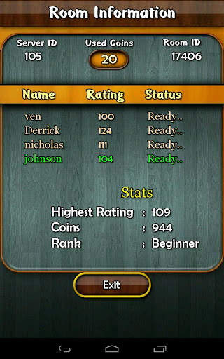 - Play in 3 online game modes with 4 game room types based on player skill rating.