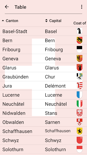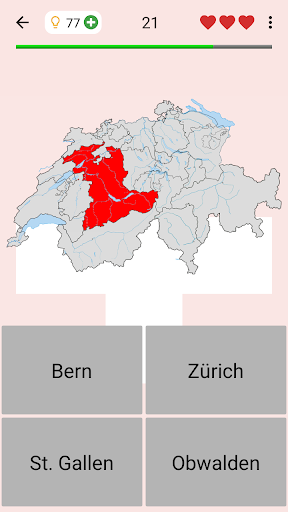 The app is translated into 9 languages, including English as well as official languages of Switzerland: German, French, and Italian. So you can learn the names of the Swiss cantons in any of them.