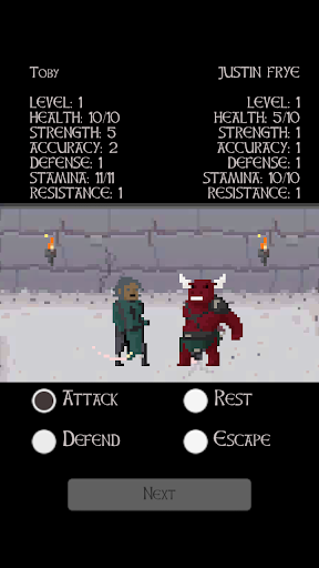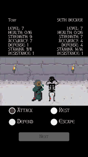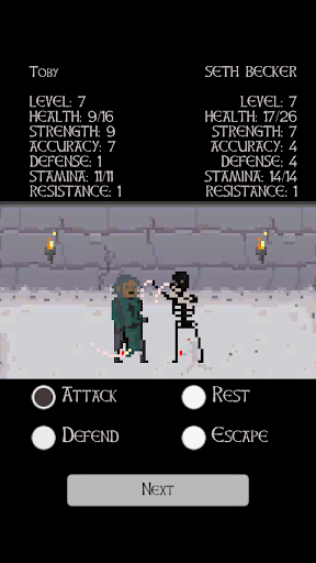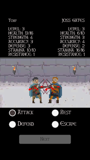 The dungeons are full of horrid and angry warriors seeking glory and action in the darkness and humidity. Wizards, Orcs, Humans, Skeletons, Clerics, Monks, and other terrifying creatures will try to cut you to pieces. To reach your destiny you will need to balance your pixel character's points. You get to decide how much Strength, Accuracy, Defense, Health, Stamina and Resistance your character will have. If you focus on some skills you might neglect others which are also important! Also, new characters will unlock as you defeat more and more enemies! Sword master is a tactical RPG where your character will pay for any mistake with their life. Do you have what it takes to be able to defeat enemy after enemy and become the Sword Master? Will you be able to slash and beat others with the necessary cruelty to become a true pixel hero? The dungeons are cold and wet and always offer combat and fighting. Does your pixel character have the strength to defeat the hardcore, horrid and terrifying opponents?
