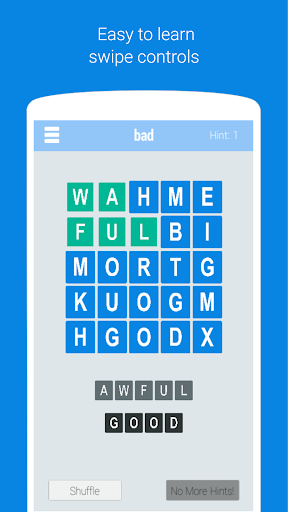 ➤ Natural Controls : Swipe across letters to create words. Don't forget, there's no going diagonal!