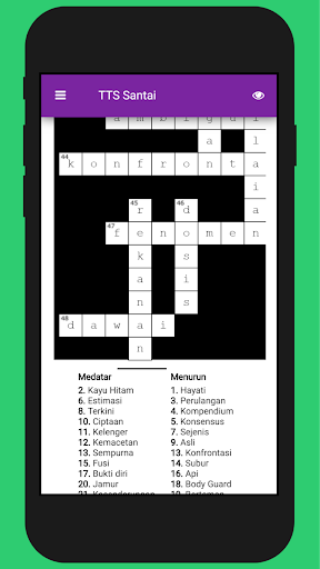 Sama seperti permainan TTS lainnya, dengan menggunakan aplikasi ini kamu bisa bermain Teka Teki Silang, tapi bedanya dengan permainan satu ini kamu bisa mengerjakan soal-soal Teka Teki Silang dengan santai semau-mau kamu.