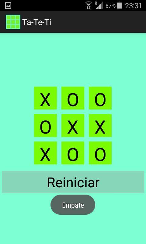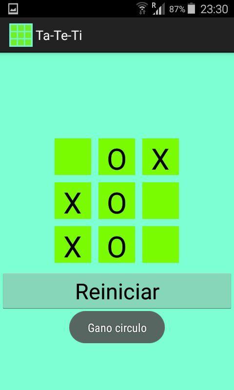Ta-Te-Ti es un juego para dos jugadores, llamados X y O, que toman marcan los espacios en una cuadrícula de 3 × 3. El jugador que logre colocar tres de sus símbolos en una fila horizontal, vertical o diagonal, gana el juego.