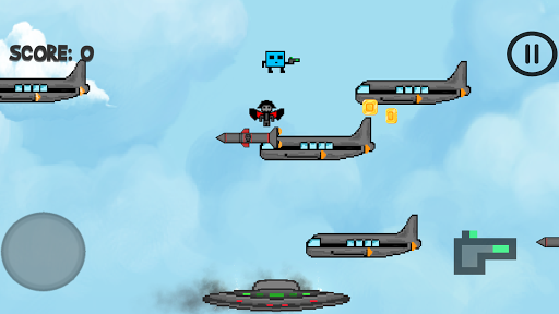 Jump and survive as far as you can by shooting the enemies like planes, missiles and evil sequels, collect as many coins as you can and be the best!