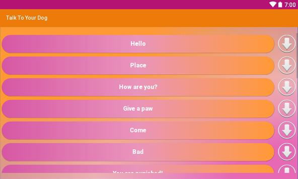 You can tell your dog: Hello, How are you, Give me a paw, Sit, I love you, Want to eat?, Well done, To me, You're punished, and more ...