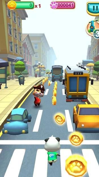 There are many pets for you to choose: tom cat, cute dog and naughty panda. Game is free to download play. It's cute and fun which is suitable for all ages including boy and girl. If you love pet and want to play an endless running subway game then you should download it and enjoy the surfers over obstacles.