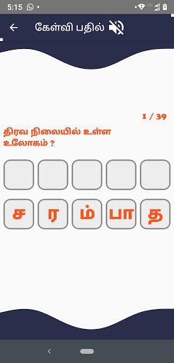 Tamil word game application is tamil words with the collection of tricky puzzles, questions, GK quiz and brain teasers. Easy to learn tamil words and solve quiz and puzzles.
