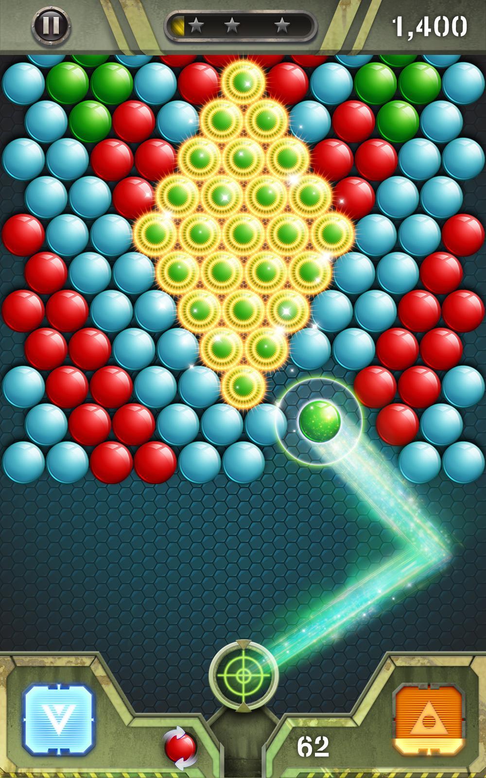 Solve the bubble packed puzzles and earn awesome boosts and power-ups: