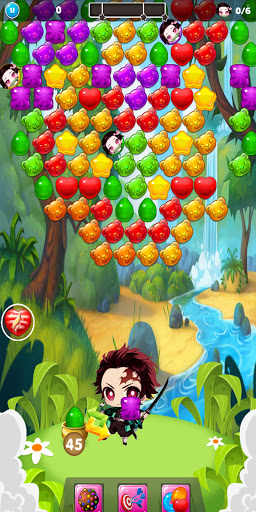 Every level has varied difficulties. help Tanjiro to pick up the adorable Kamado Nezuko trapped on the island while playing candy bubble shooter rescue. WithTanjiro you will have to match 3 candy bubbles and popping all the candy bubbles with different colours To free trapped baby Nezuko.