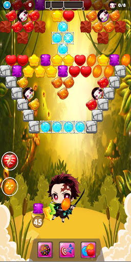 Have fun and crush, blast and burst the puzzle pieces. Improve your skills with the free match 3 Nezuko Tanjiro Candy Bubble Shooter Rescue Nezuko. It is a free bubble shooter Get ready for the challenge and master the game
