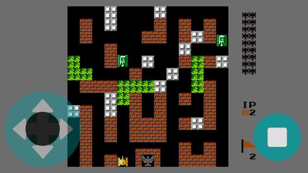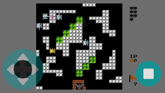 This game contains 35 different stages that are 13 units wide by 13 units high. Each map contains different types of terrain and obstacles. Examples include brick walls that can be destroyed by having either the player's Tank or an enemy Tank shoot at them, steel walls that can be destroyed by the player if he has collected three or more power-up stars, bushes that hide Tanks under them, ice fields that make it difficult to control Tank and pools of water which cannot be crossed by Tanks. There are four progressively harder types of enemy Tanks. The game becomes more challenging in later levels, as enemy Tanks may act as decoys to lure players away from their base so that another Tank can destroy it. In addition, flashing Tanks could be destroyed for power-ups.
