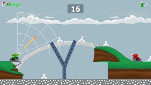 It is not easy as you might think, you have to defeat the wind factor and the gravity effect. This is a very entertaining and simple yet challenging 2D tank war game, you have to aim perfectly keeping in mind the wind and gravity factors and shoot to destroy your enemy, don't forget you have only 3 bullets to achieve that. If may win the battle but you have to win the war!