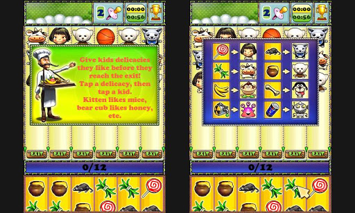 Welcome to Fairyland! Animals can speak here and they live in peace with people, lunarians and robots. Their kids enjoy summer at scout camps together, and you work there as the delicacy specialist. You must feed kids with delicacies, but tastes differ - children like lollipops, while kittens prefer mice, and so on. Mind their preferences and hand out the delicacies as fast as you can!
