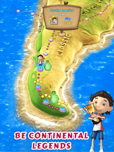 Game starts from southern tip of South America and you progress through paths by completing levels on them.