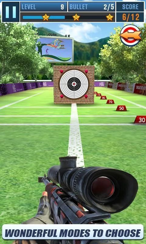 The real sniper rifles to shoot the bulls eye on the target in shooting range which is gold feature among the long range sniper shooting game.