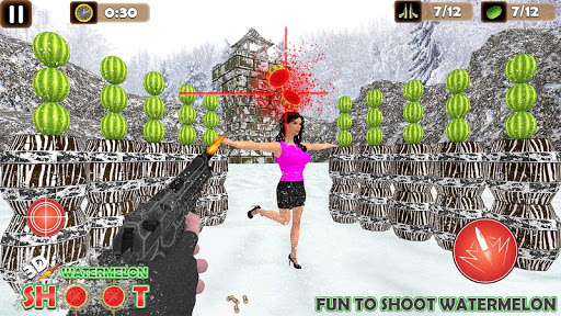 Experience this one of the best free fun fruit shooing games 3D and fruits cut games 3D in the era of new 2020 games. You must have perfect FPS shooting games expertise. FPS (first person controller) fruits shooting game or fruits cut game are the creations by gameplay productions in a fantastic mode. If you ever play “Apple Target Shoot: Watermelon Shooting game 3D” that was published in 2k19 then you will surely enjoy this same fabulous idea of watermelon shooting game in awesome snowy environment. During gameplay mode snow falling puts incredible feelings. So don’t miss this amazing fun shooting game during snow fall. There is a big difference between 2D fruit cut games and fruit cut games 3D. Aim your target, smash all the watermelons one by one places on crazy girl to prove yourself the real shooting expert. Grab your attention, keep pistol in hand, set your target, just shoot the watermelons and enjoy ultimate fun of fps shooting game techniques. May be snow falling can distract your target, don’t hesitate, you are very close to your target. Game is all about level based challenge mode free fun shooting game in which you have to shoot all watermelons with pistol loaded limited number of bullets in a limited time. Keep in mind time and gun bullets are limited in this new watermelon target shooting game 3D. All play area setup with a beautiful standing lady in front of you in the snowy abundant village. Rescue the beautiful girl from all watermelons. Be careful and be attentive to your watermelon targets, because girl shooting is strictly not allowed otherwise you will lose your all easy and shooting missions. Complete all the challenging and survival missions, experience the pistol shooting techniques, improve your watermelon FPS shooting expertise and become the best gun shooter of the world in 2020.
