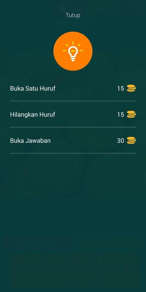 Tebak Kata Gambar Nama Buah, yang disertai gambar dan huruf untuk mempermudah menebak.
