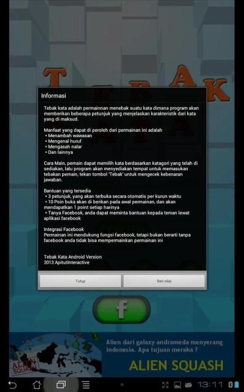 - FullScreen, saat ini permainan tebak kata mampu fullscreen