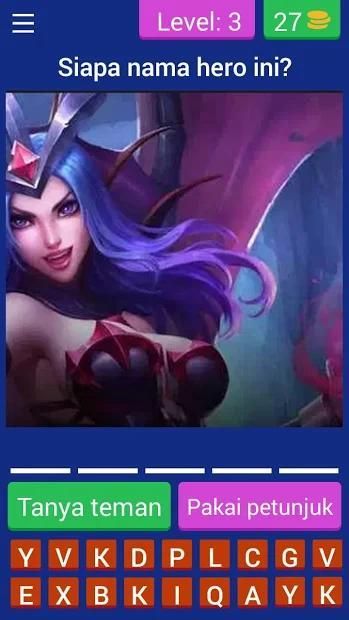 Kuis Tebak Hero Mobile Legends, jika anda pemain setia mobile legend anda pasti tau dong nama nama heronya, maka dari itu kami membuat game ini untuk membuktikan kalau anda memang hebat bermain dan mengetahui semua nama nama hero yg anda di game mobile legend bang bang.