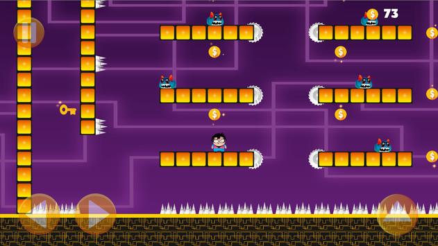 Let's go and have fun with super Teen hero! Pass two worlds and clear all 36 challenging levels! Your only mission is to escape all mysterious rooms in this, hard as a titan, action game! This is classic, multi level, action game for teen players, with beautiful graphics and super titan hero in the main role. He should go through dangerous rooms, his mission is to find a key to open titan doors and escape to the next level, trying to avoid traps and monsters. Teen must shoot, fight and smash enemies and collect coins. Go and start this escape mission in any of two different worlds, both with super addictive levels, filled with foes and hidden areas. You will need a lot of patience, depending on your skills, to find keys and unlock all titan doors and secrets and go to the victory level. This action platformer game with lot of engaging levels, fun teen character and awesome music will entertain you for a long time. Let's go and enjoy this fun and challenging action platformer! And do not forget to invite your friends to jump in this escape mission.